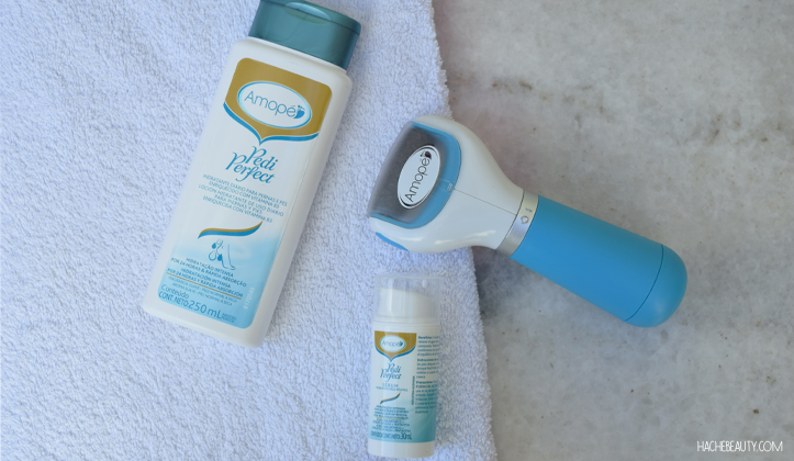 El sistema Amopé está compuesto por 3 productos: el Pedi Perfect, el serúm hidratante y la loción hidratante para piernas y pies. Les propongo conocer cada uno por separado para poder explicarles mejor el proceso.