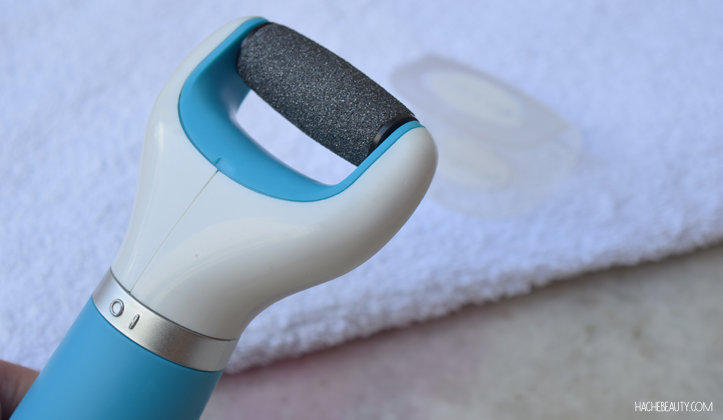 2- Girá y deslizá el cabezal por los sectores en los que quieras remover las durezas hasta que sientas tus pies suaves. Este paso me toma unos minutos.
